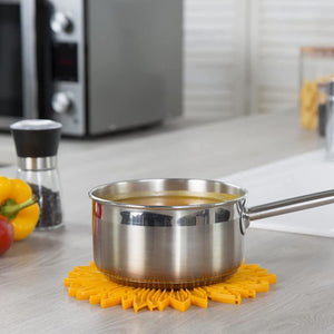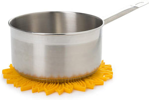 Protect counters and surfaces from hot pots and pans with this Charles Viancin sunflower trivet. Made from silicone, this trivet features a yellow sunflower design. It is ideal for a variety of uses in the kitchen. Even better, it is top-rack dishwasher safe.