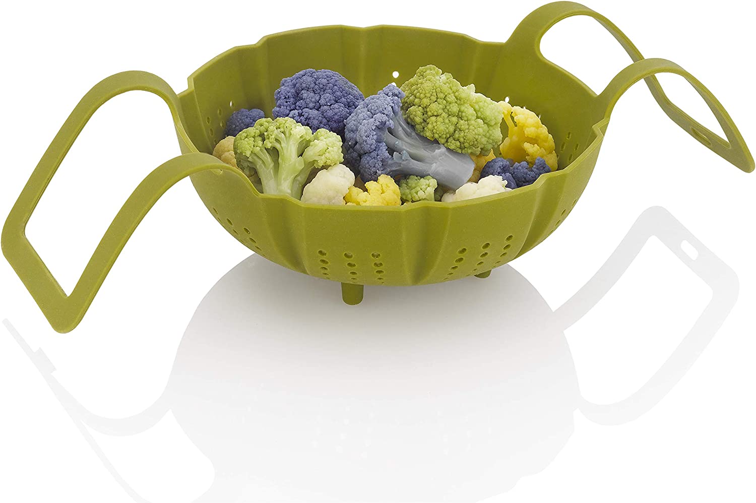 SAFE - This steamer insert is BPA free, contains no plastic, and it's made of high-quality food-grade silicone that allows your food to stay free from harmful chemicals. Microwave safe, heat resistant, and oven safe up to 445°F (229°C)