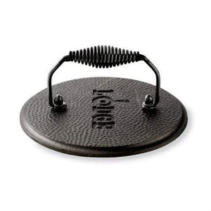 The Lodge Pro Logic Cast Iron Round Grill Press is perfect for using in Lodge’s Round Skillets when making burgers or sausage!