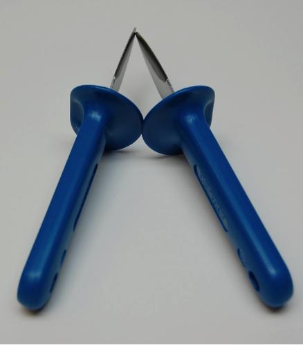 Indulge in an oyster feast with the help of this oyster shucking knife. Designed to be comfortable yet functional, the blade measuring 2-1/2 in., is heat treated for additional durability and hardened shape. It has a thin edge to easily slip between the oyster shell near the hinge and pry open the shell. It will also easily cut the oyster from the shell. The handle is 4-1/2 in. long with a built in guard that prevents less slippage when handling this stainless steel knife. These knives are durable and dishwasher safe for an easy cleanup after each use.