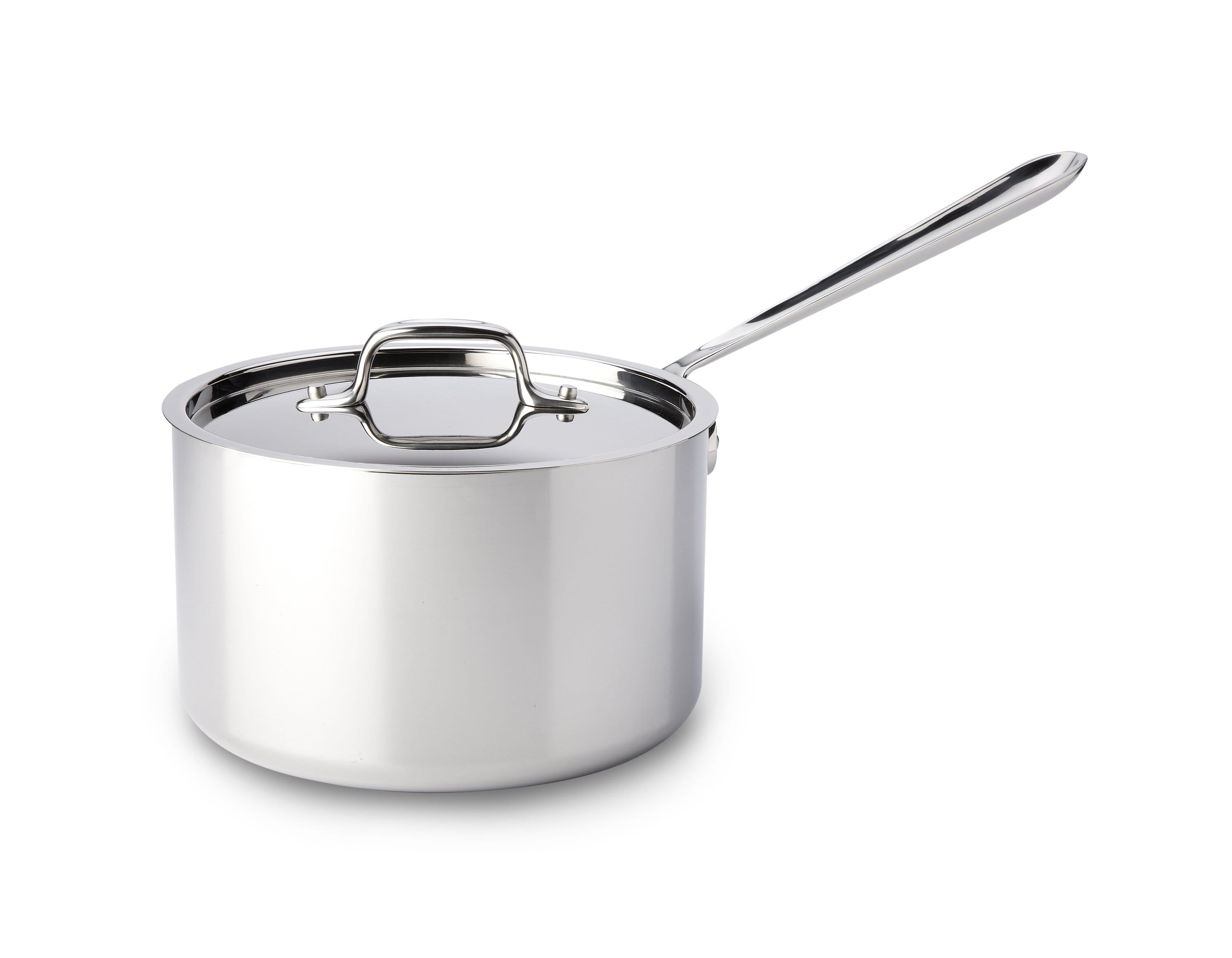 Make sauces, cook in liquids, and reheat food with the All-Clad 1-Quart Saucepan. The smaller surface area and tall, straight sides allow it to hold heat, while the lid limits evaporation. This pan is constructed with bonded stainless steel for exceptional heating, even in induction cooking. Its stick-resistant, 18/10 stainless steel interior and long, comfortable handle will make this an essential tool for your kitchen.